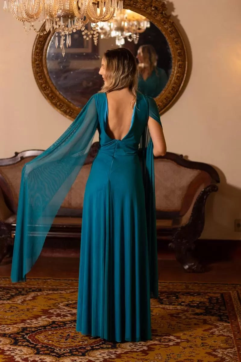 Micro Tulle Dress with Long Capes and Hand-Embroidered Details.