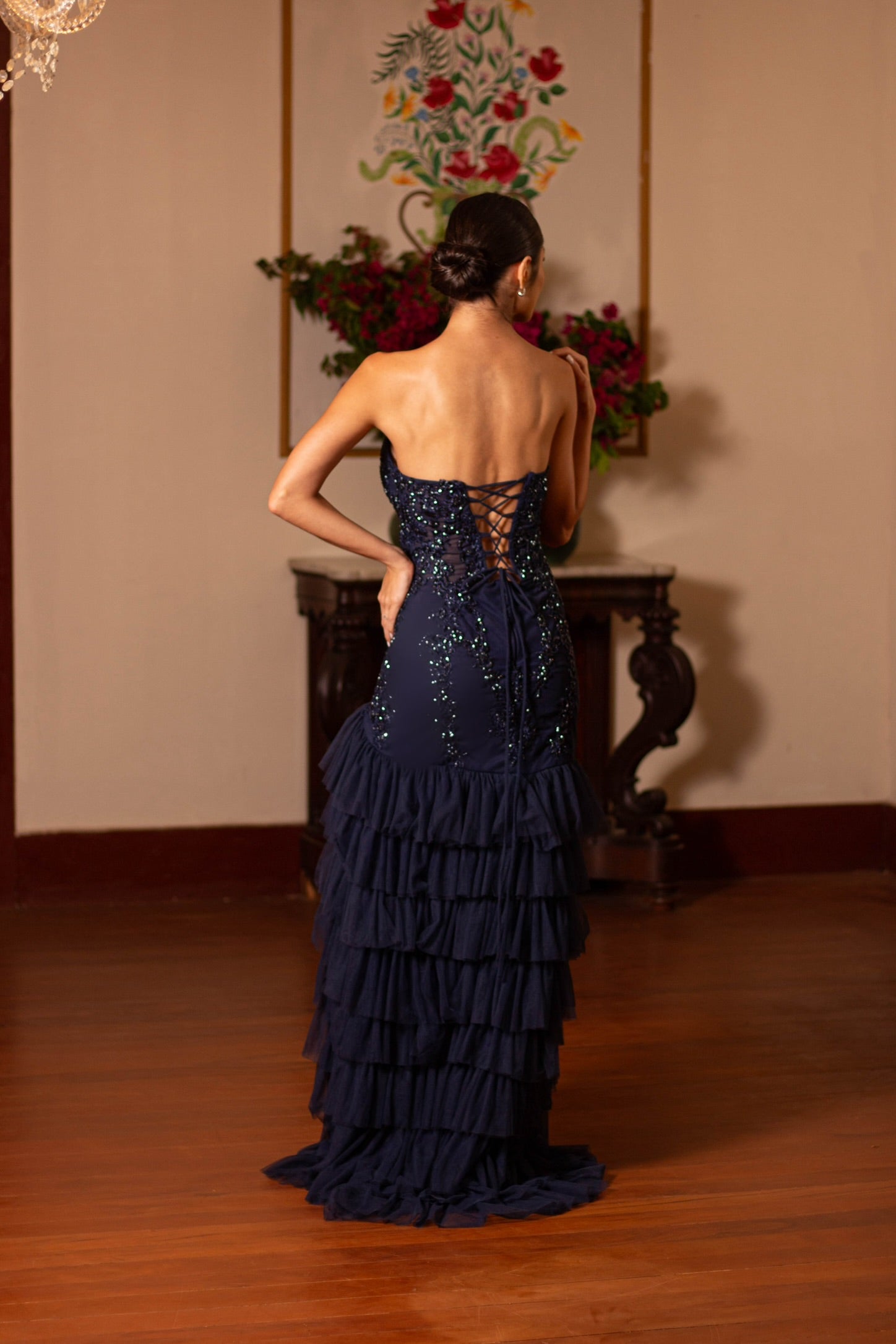 This dress is delicate; we recommend selecting the correct sixe for an impeccaable fit and comfort throughout you event.