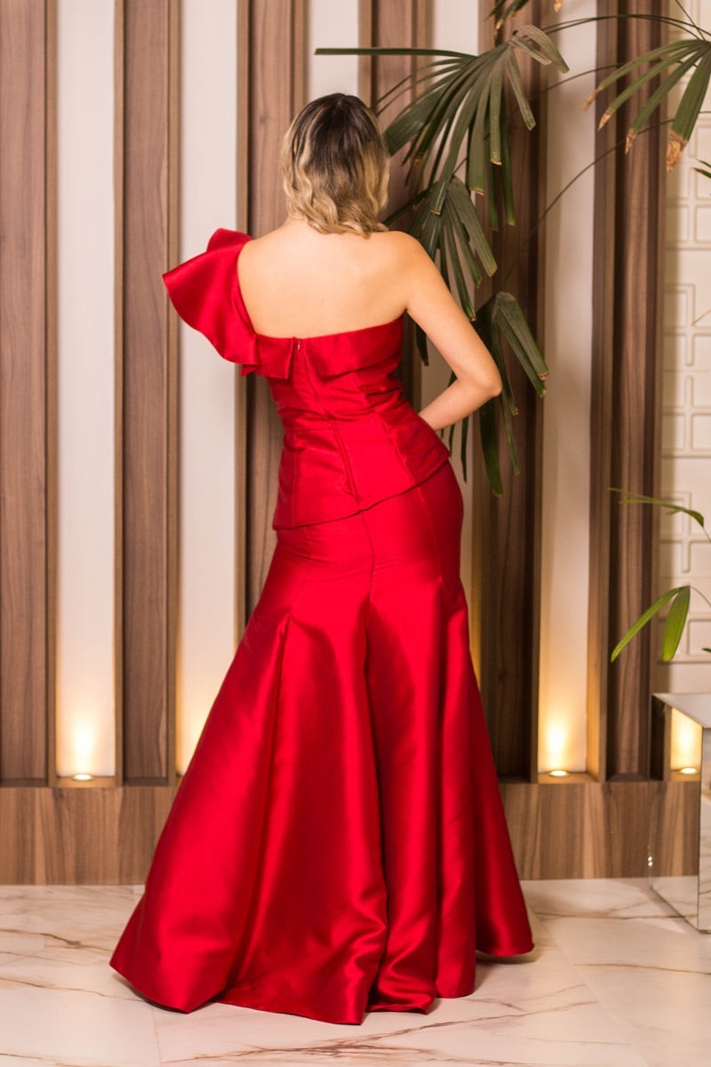 One-Shoulder Zibeline Dress with Mermaid Skirt.