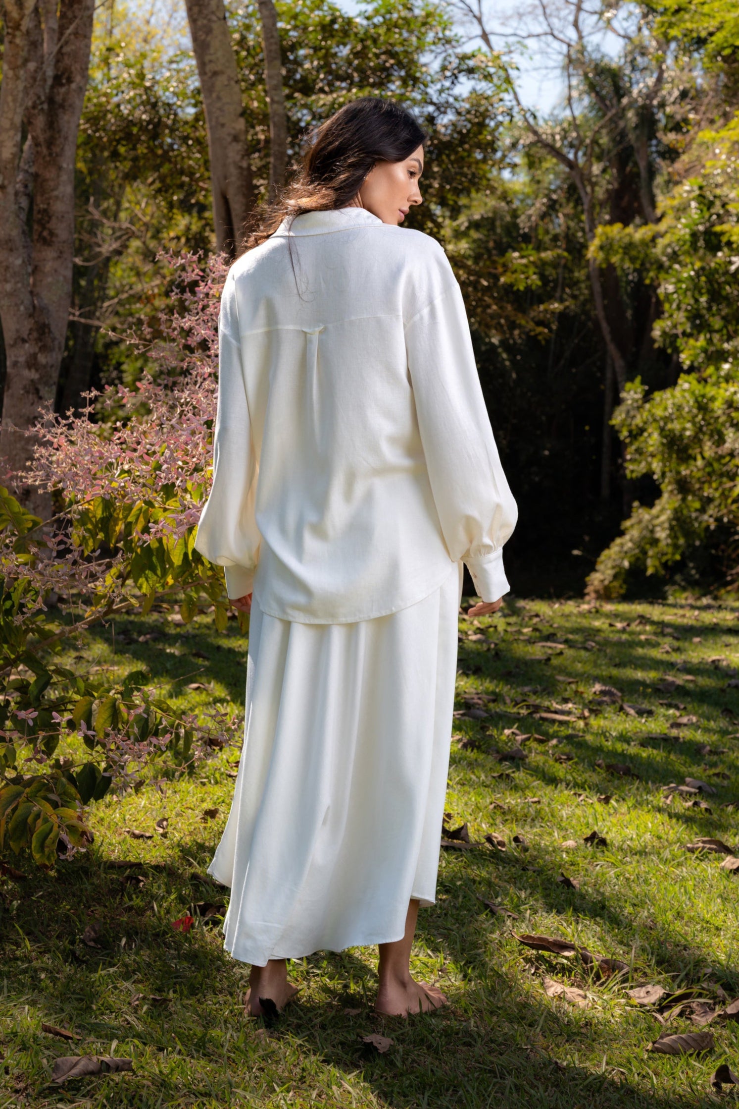 CAMBURI LINEN MIDI SKIRT WITH HANDMADE CORD - Off White