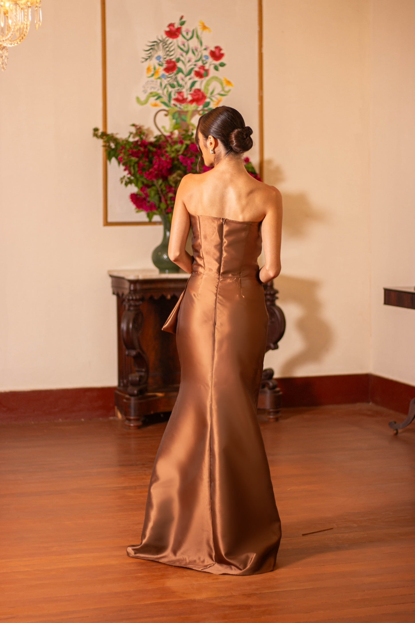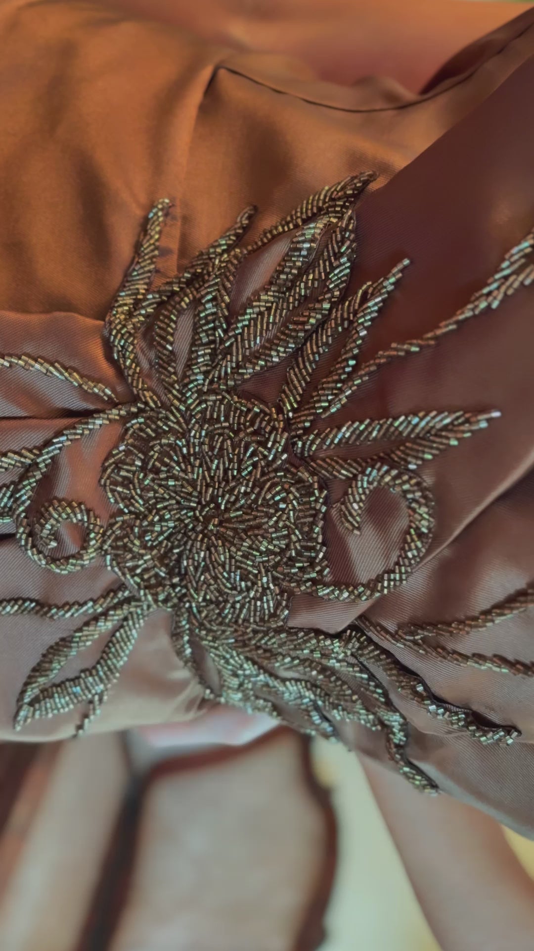 Zibeline Dress with Structured Bow, Mermaid Silhouette, and Handcrafted Embroidery.