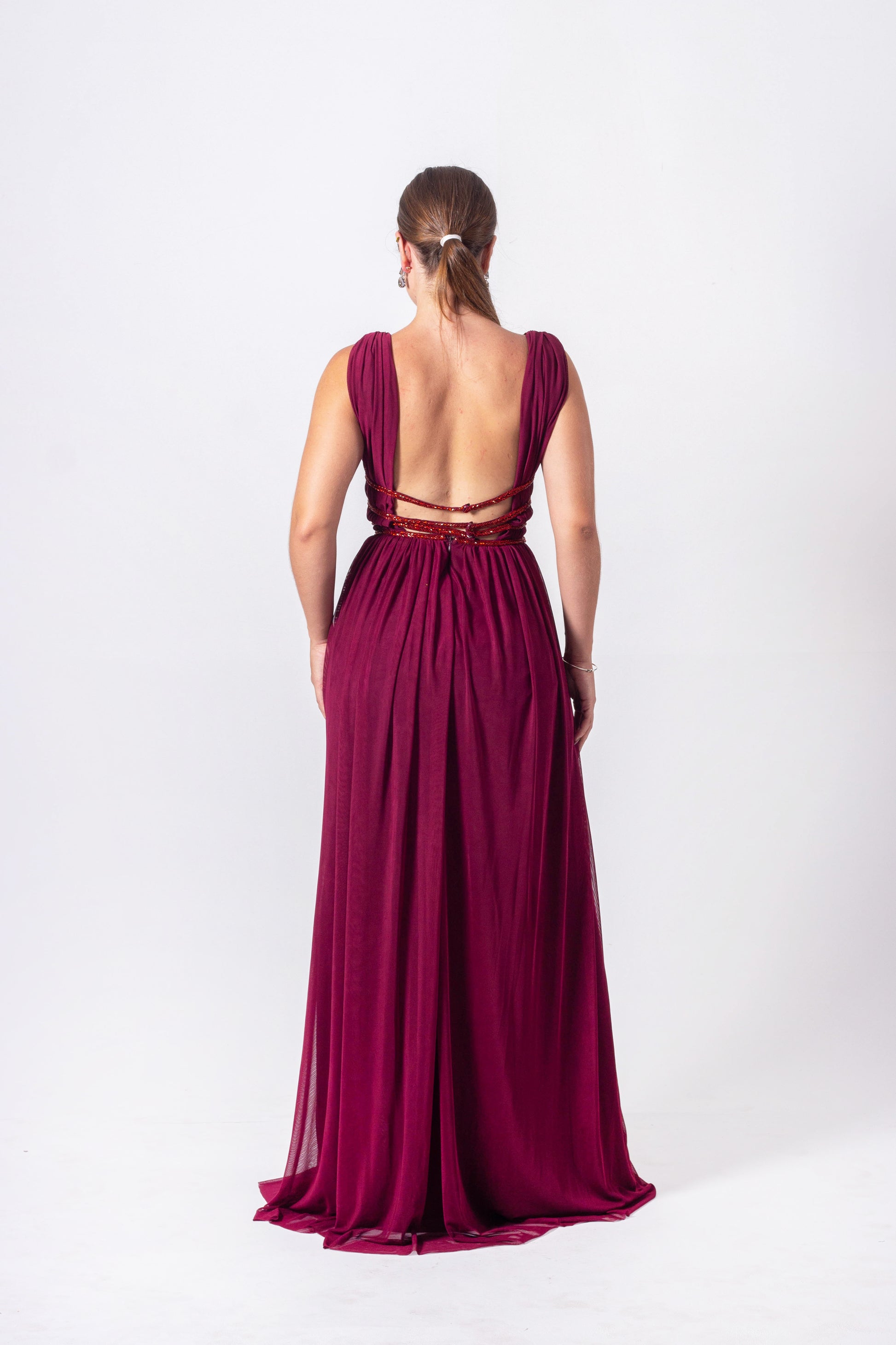 Micro Tulle Dress with Hand-Embroidered Details and a Slit.