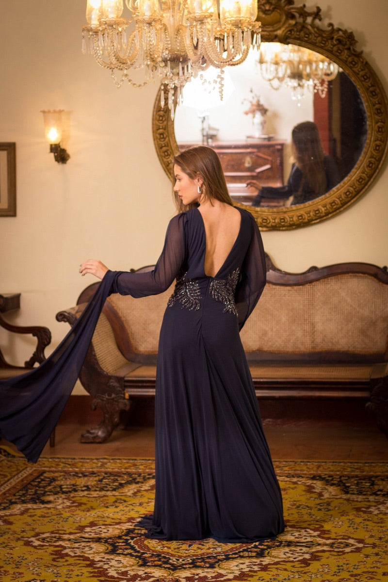 Micro Tulle Dress with Long Capes and Hand-Embroidered Details.
