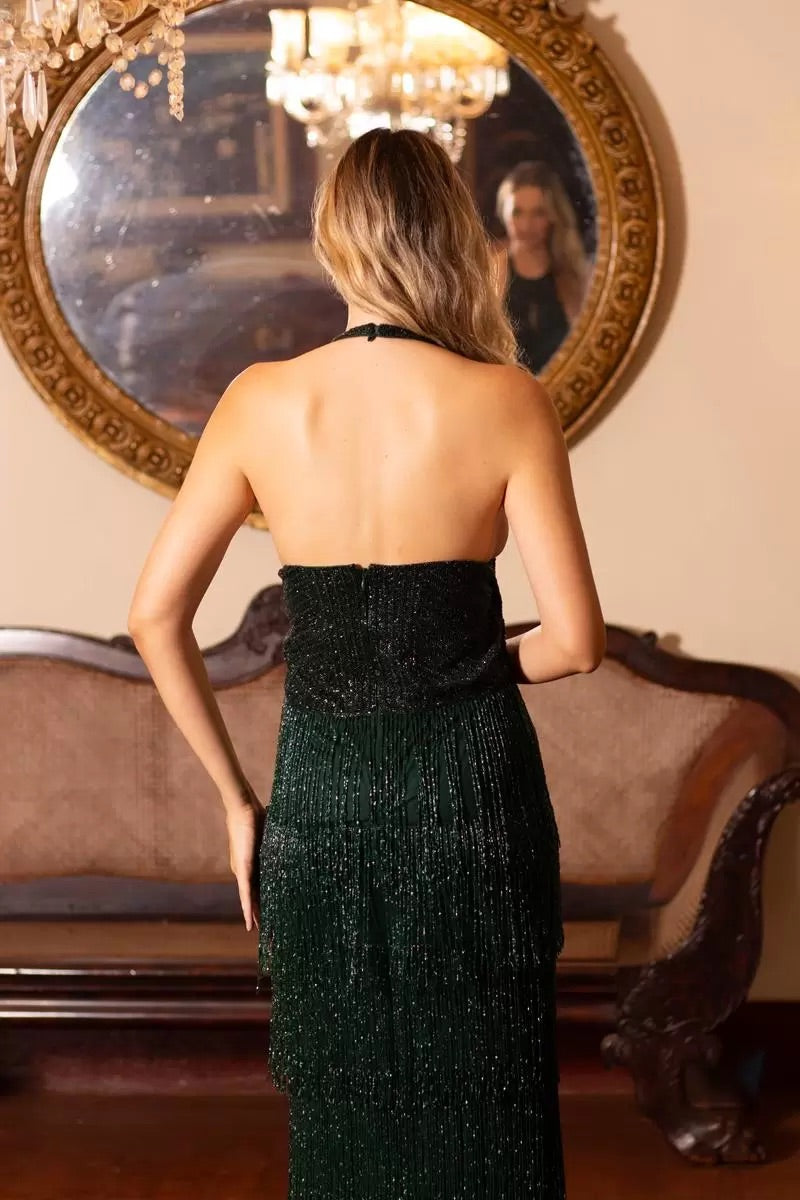 Fully Hand-Embroidered Dress with Fringe and a Mermaid Skirt.