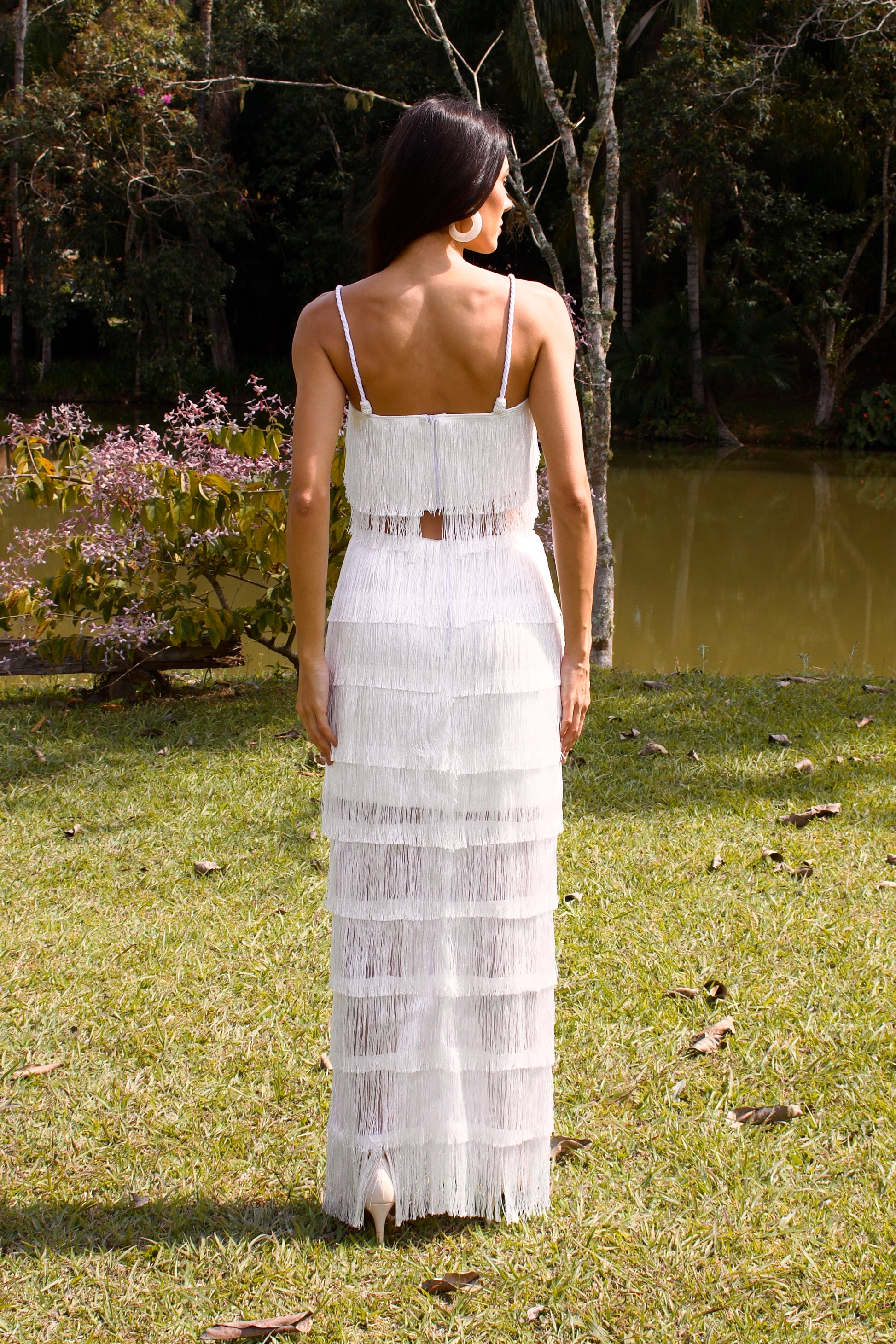 ITAPOÁ FRINGE MAXI SKIRT - White