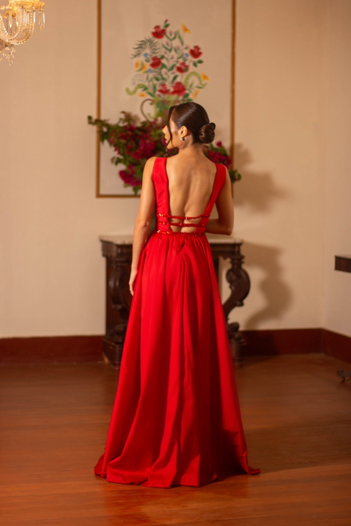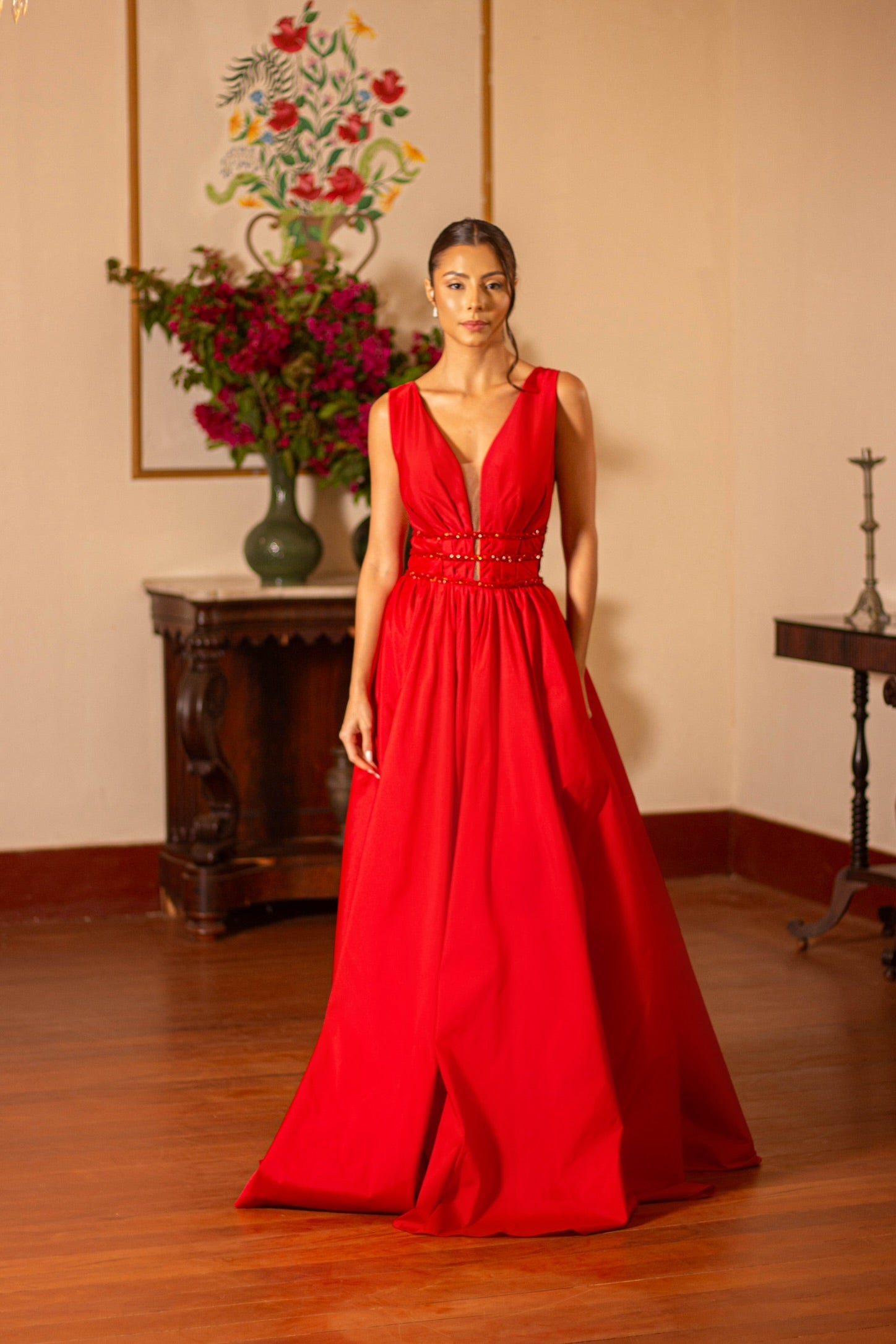 Indian Taffeta Dress with Hand-Embroidered Details.