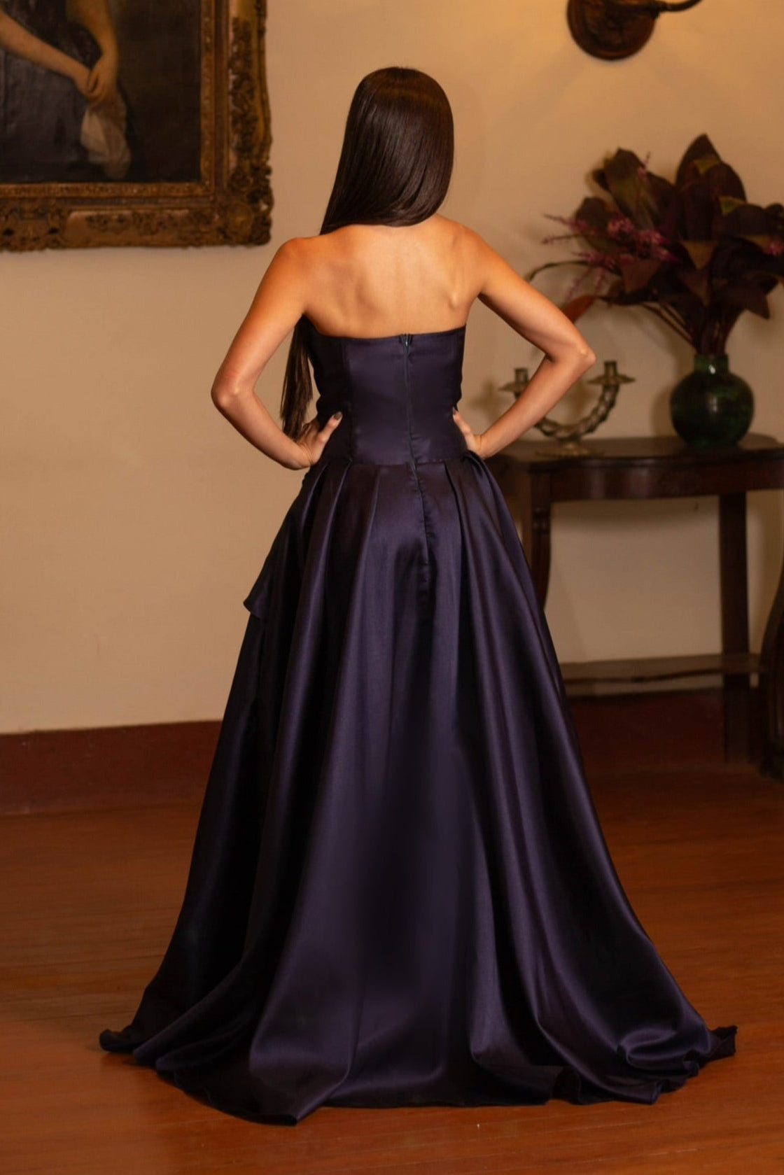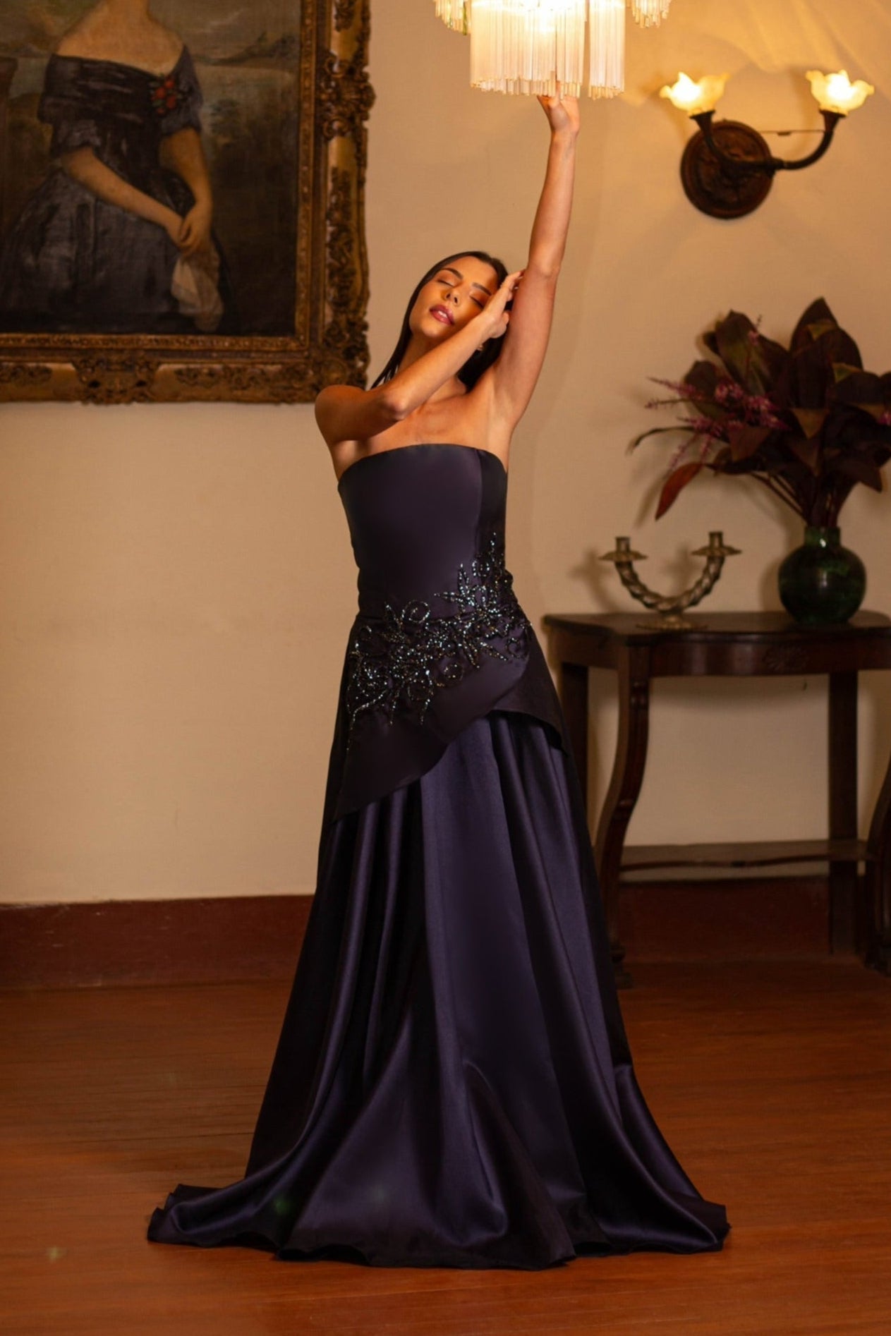 Zibeline Strapless Dress with Handcrafted Embroidery.