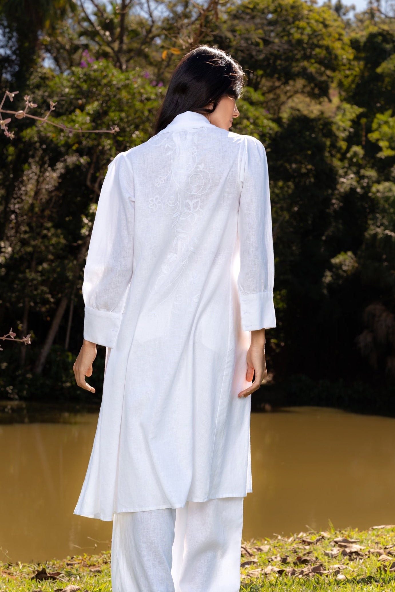 VITÓRIA LINEN CHEMISE WITH HALTERNECK - White